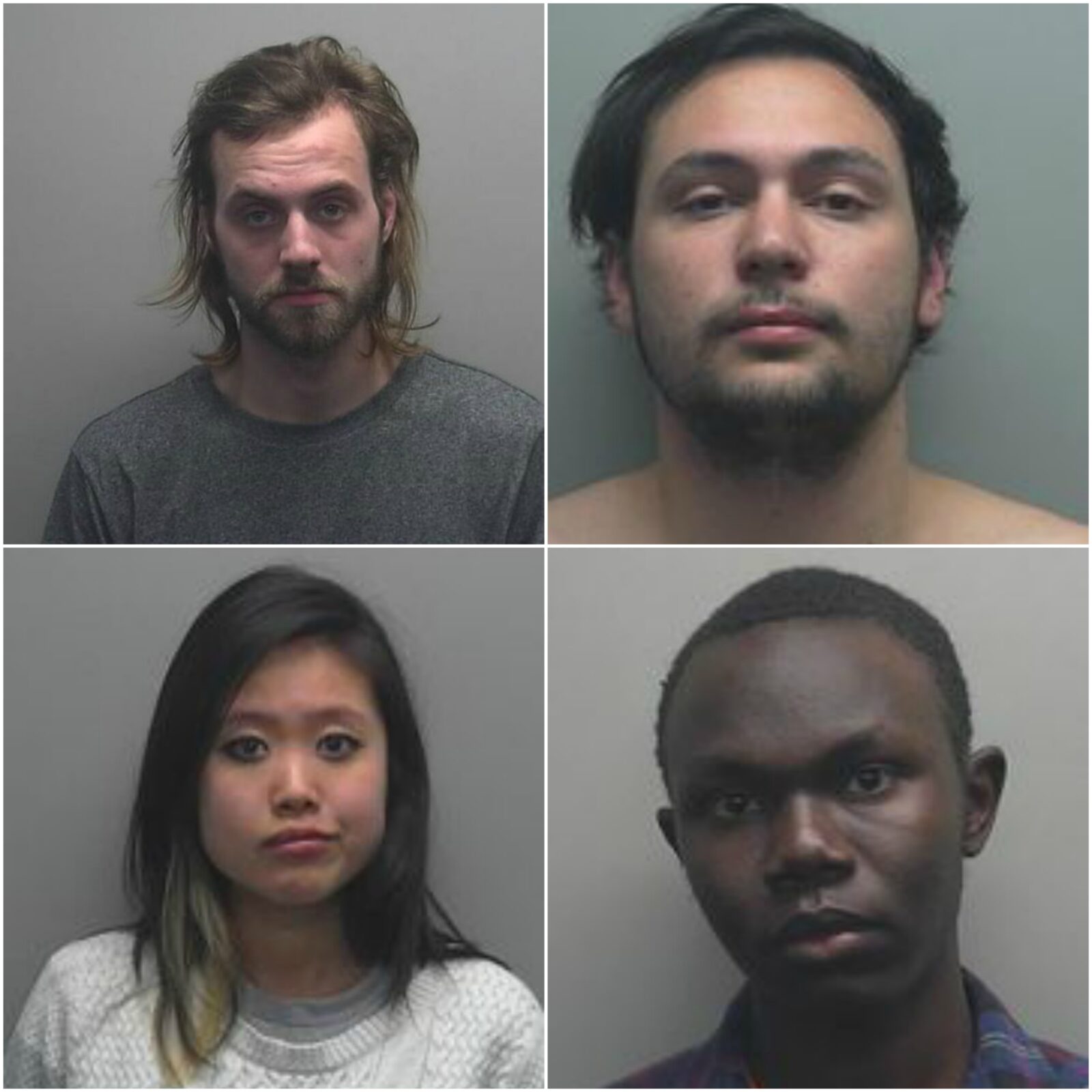 After the individuals left, the owner followed footprints to where the suspects had broken a door and entered the building. Camera footage shows the four inside the building.